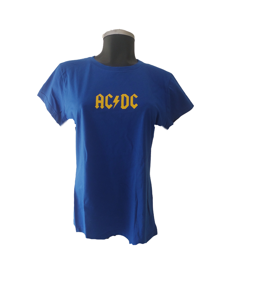 Blusa mujer, azul, mangas cortas: Imagen. Logo de banda de rock AC/DC. Material: Algodón. Talla XL